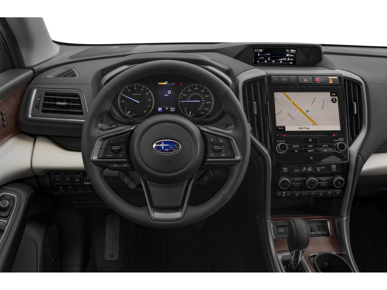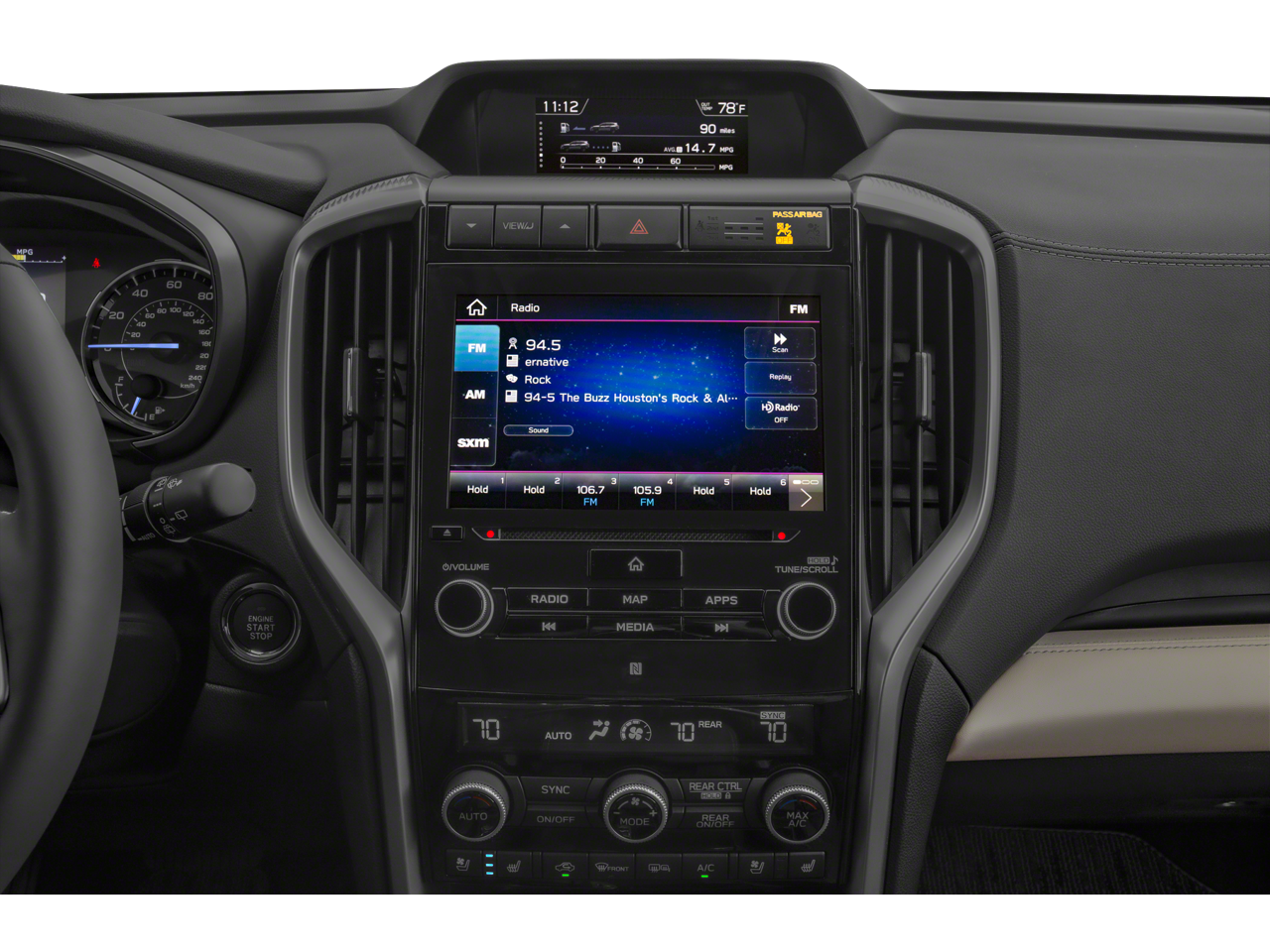 - Radio: Subaru STARLINK 8.0" Multimedia Nav System -inc: AM/FM stereo HD Radio w/single disc CD player, MP3/WMA/CRR/RW file capability, multi-touch gesture high resolution LCD display screen, voice activated controls for radio and navigation, Bluetooth audio streaming connectivity, Bluetooth hands-free phone connectivity, Bluetooth hands-free SMS text messaging connectivity (applicable w/compatible cell phone), Near Field Communication (NFC), iPod control capability, SiriusXM All Access radio (subscription required), SiriusXM Traffic (subscription required), SiriusXM Travel Link (subscription required), smartphone integration for Aha, Android Auto, CarPlay and Pandora, STARLINK cloud applications, steering wheel controls for audio and Bluetooth, harman/kardon quantum logic surround sound speaker system w/14 speakers, subwoofer and harman/kardon 792 watt equivalent maximum output amplifier, 3.5mm auxiliary input jack and front, second and third row dual USB ports