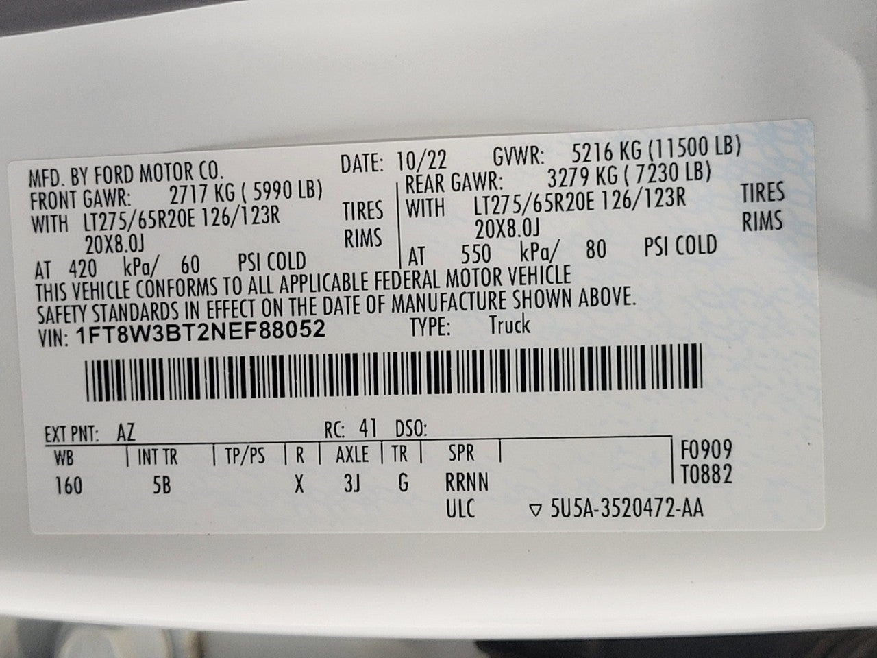 - Tires: LT275/65Rx18E BSW A/S -inc: Spare may not be the same as road tire